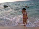 波打ち際で星の砂を発見、星の砂探しに夢中になって結局5時過ぎまで探し続ける。 明日もいっぱい見つけてやる |