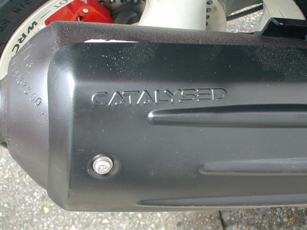 マフラーにはCATALYSEDの文字が。EUでは2ストロークエンジンの肩身はますます狭くなってゆく。
