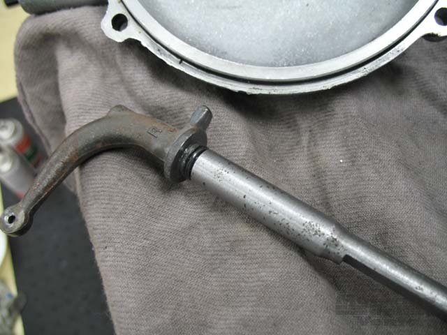 クラッチ側のレバーシャフトも中にOリングが入っているので当然これも交換。FL2の最後の方のロットでは新車時からこのOリングがが目になっているものが結構ありました。ワイヤーの通る穴はちょっとした加工をするだけでワイヤー切れをかなり減らすことができます。