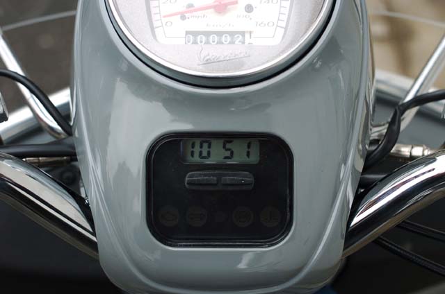 インジケーター。メーターの下には時計と各警告灯が並ぶ。