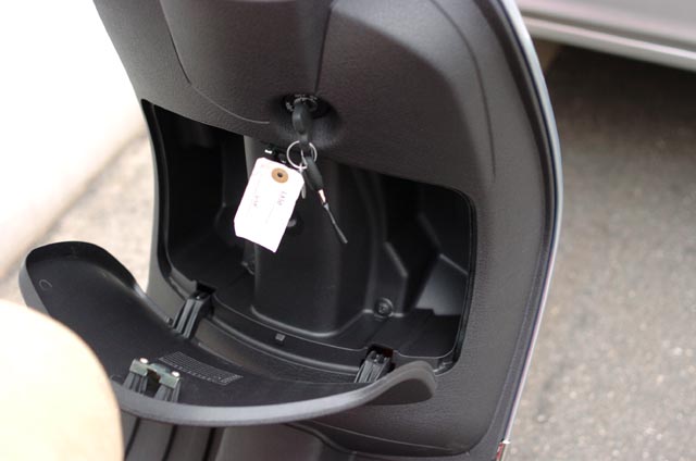 グローブボックスはイグニッションキーの部分を押すと開く、当然ハンドルロックされているときは開かない。