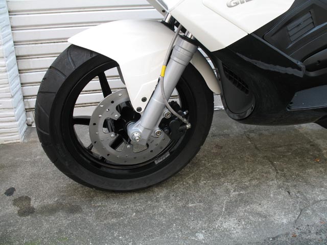 フロントサスペンションは一般的なテレスコピックタイプ。